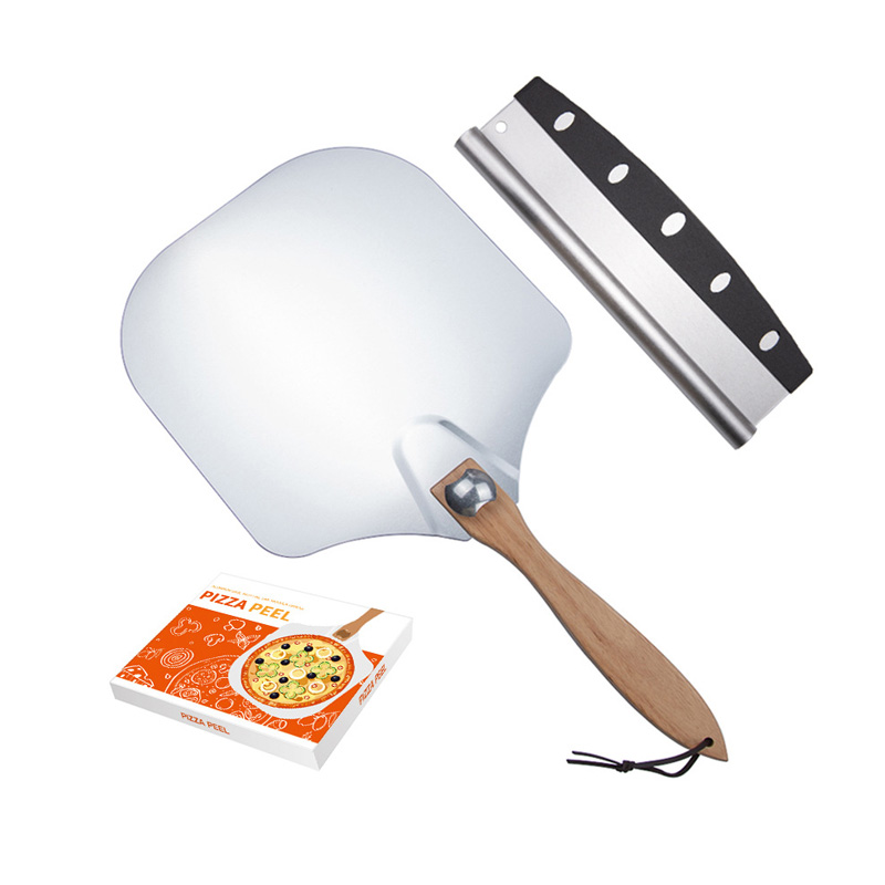 High quality aluminum pizza peel customized wooden handle pizza shovel kitchen baking multifunctional pizza spatula