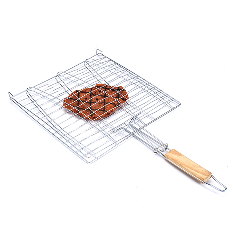 Stainless Steel Fish Grilling Basket BBQ Grill Net With Anti-scald Wooden Handle In Stock
