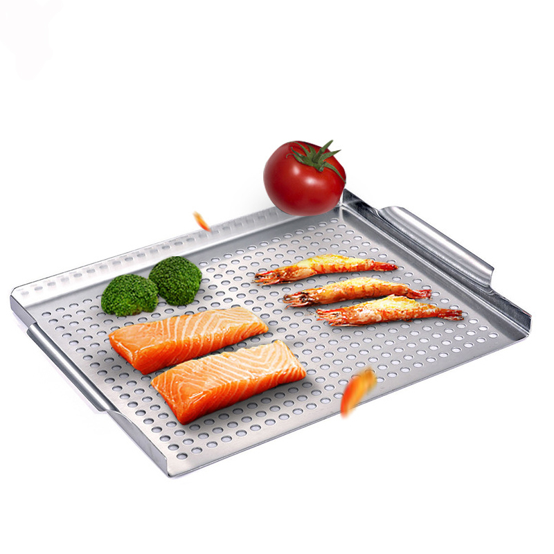 Eco-Friendly BBQ Frying Pan Punched Stainless Steel Barbecue Tray Outdoor Barbecue Grill Plate