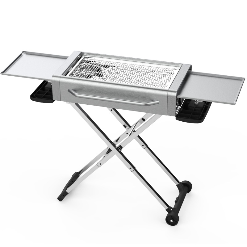 2022 new large outdoor BBQ grill portable foldable X-shaped legs adjustable height better stability suitcase pull move